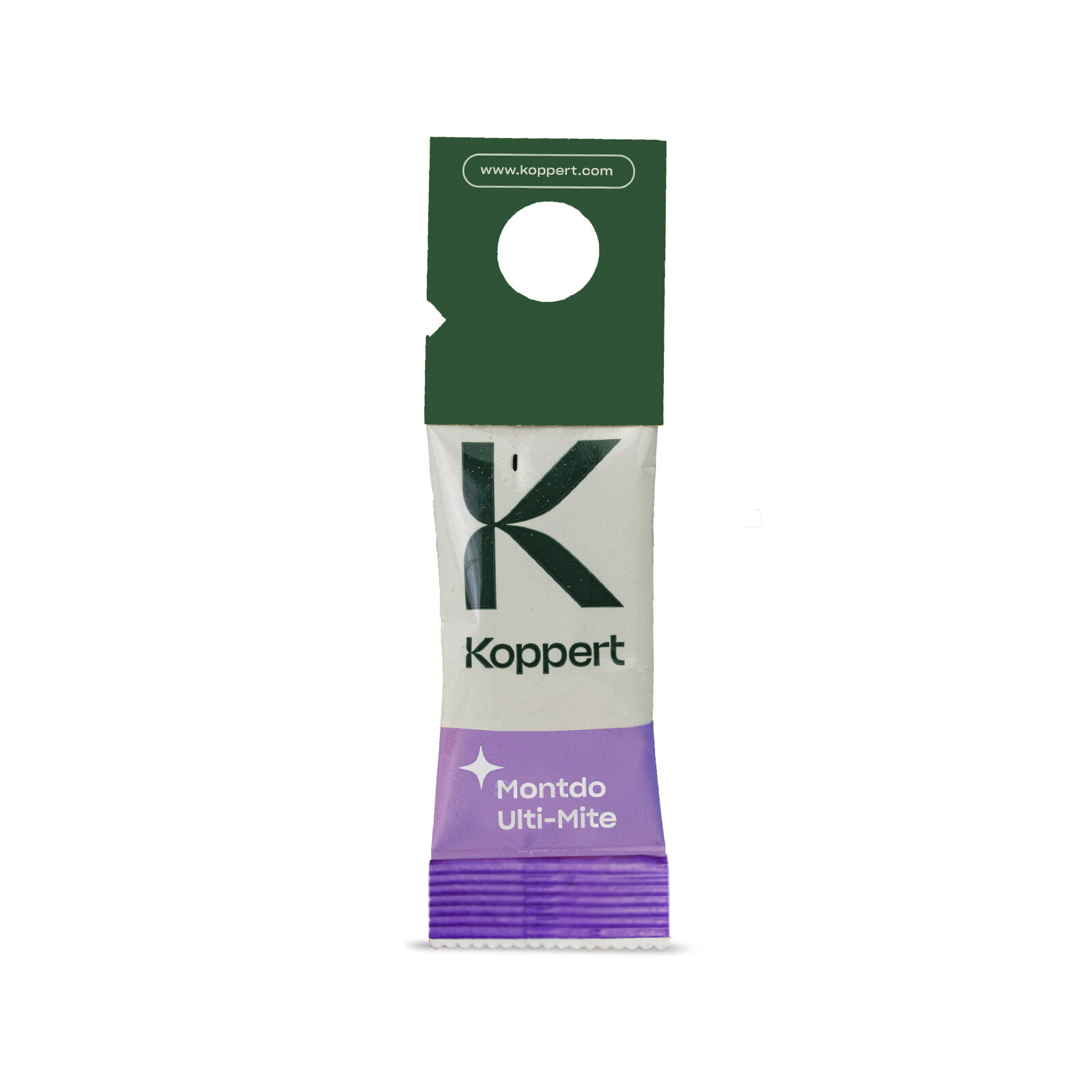 La dosis de Montdo Ulti-Mite depende del clima, los cultivos y la densidad de plagas, y debe ajustarse siempre a la situación particular. Inicie la introducción de forma preventiva o en cuanto se detecten las primeras plagas en el cultivo. Utilice al menos 4.000 sobres por hectárea y cuélguelos espaciados uniformemente en el cultivo. La suelta debe repetirse a las 4 semanas si la plaga no está controlada. Consulte a un asesor de Koppert o a un distribuidor reconocido de productos Koppert para que le aconseje sobre la mejor estrategia para su situación.