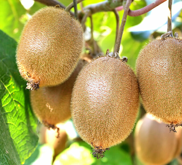 El kiwi es el nombre de la baya comestible de varias especies de enredaderas leñosas que pertenecen al género Actinidia. El kiwi denominado gold o Actinidia chinensis tiene una piel suave y de color bronceado. El color de su pulpa varía del verde claro a un intenso amarillo. Esta variedad en particular tiene un sabor más suave y es más aromático, que recuerda a variedades de frutas subtropicales.