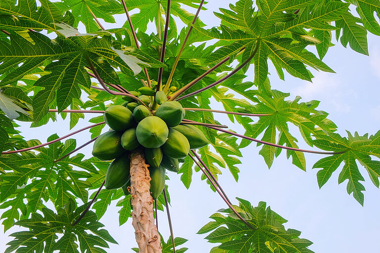 Una fruta tropical, que se conoce en distintos países por el nombre de papaya, papayón, lechosa o melón de árbol, es el fruto del Carica papaya, un árbol de la familia Caricaceae. Se cultivó por primera vez en México, pero ahora crece en la mayoría de regiones tropicales de todo el mundo. La fruta de papaya tiene una longitud de 15-45 cm y un diámetro de 10-30 cm. Su piel suave tiene un color de ámbar a naranja.