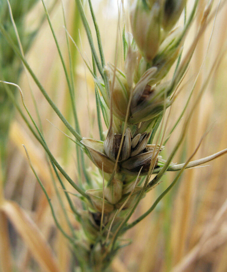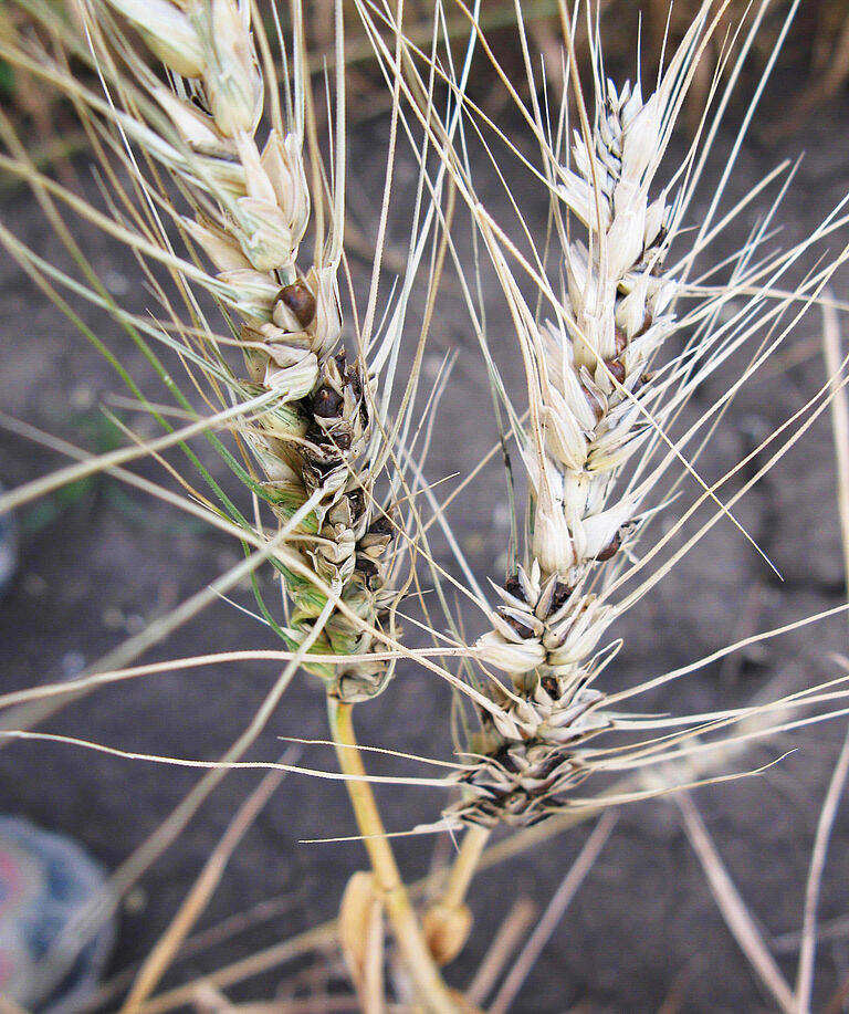 Las teliosporas germinan en respuesta a la humedad y forman basidiosporas, también denominadas esporidios primarios. Se distinguen dos tipos de apareamiento. Las basidiosporas filiformes se fusionan en el centro con una basidiospora del otro tipo de apareamiento, de modo que se forman estructuras en forma de H, que germinan directamente o forman esporidios secundarios, que infectan las plántulas de trigo incluso antes de su emergencia y los hongos se propagan dentro de las plantas hasta la yema apical. El hongo se desarrolla entre las células vegetales y, a la larga, crece dentro de los granos. Cuando esto sucede, el micelio fúngico se transforma en teliosporas y todo el grano se convierte en una bola de carbón llena de teliosporas, Estas bolas se rompen durante la cosecha y las teliosporas caen al suelo contaminando los granos sanos, creando así una fuente de infección para el próximo ciclo de cultivo.