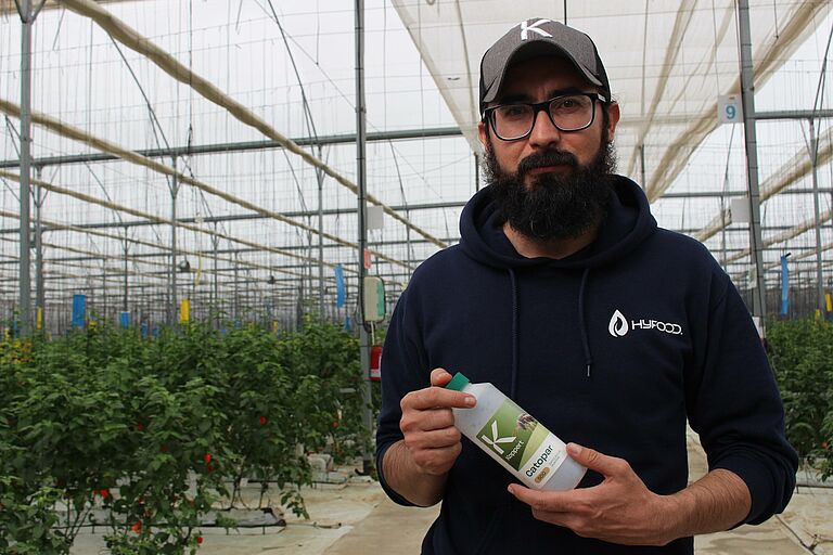 "Empezamos a buscar alternativas y encontramos a Koppert... al principio del establecimiento de las herramientas de control biológico, sus asesores nos mostraron el rango de posibilidades que tenían para establecer en nuestro cultivo. Después de hacer los estudios y pruebas pertinentes, nos recomendaron utilizar los productos que han funcionado muy bien hasta ahora", dijo Martín Salazar, director de producción de HyFood.