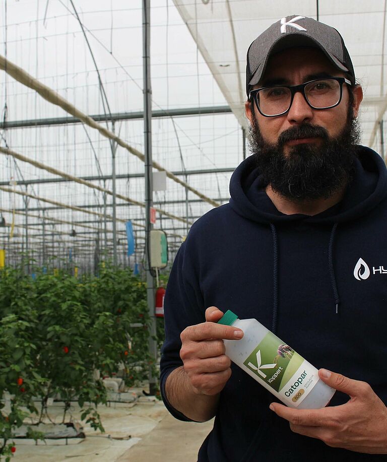 "Empezamos a buscar alternativas y encontramos a Koppert... al principio del establecimiento de las herramientas de control biológico, sus asesores nos mostraron el rango de posibilidades que tenían para establecer en nuestro cultivo. Después de hacer los estudios y pruebas pertinentes, nos recomendaron utilizar los productos que han funcionado muy bien hasta ahora", dijo Martín Salazar, director de producción de HyFood.