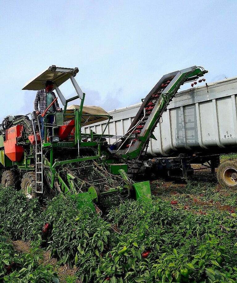 Pedro Militão es uno de los dos propietarios de la empresa Sociedade Agrícola Militão, que cultiva unas 40 hectáreas de pimientos en la zona de Marinhais. Todo el cultivo se cosecha mecánicamente. Con la mecanización, es muy importante que todas las plantas lleguen al final de su ciclo con un alto nivel de sanidad y vigor para que la cosechadora pueda hacer bien su trabajo. "Con la introducción de la recolección mecánica, nos vimos obligados a cambiar nuestra forma de producir y decidimos introducir nuevos medios que ayudaran a proteger las raíces. Fue así como conocimos el Trianum-P, una solución biológica con la que hemos constatado un aumento de la resistencia de la planta a los hongos del suelo, logrando un mayor vigor y, en consecuencia, obteniendo una mayor producción final", explica Pedro Militão.
