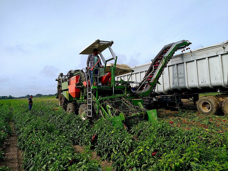 Pedro Militão es uno de los dos propietarios de la empresa Sociedade Agrícola Militão, que cultiva unas 40 hectáreas de pimientos en la zona de Marinhais. Todo el cultivo se cosecha mecánicamente. Con la mecanización, es muy importante que todas las plantas lleguen al final de su ciclo con un alto nivel de sanidad y vigor para que la cosechadora pueda hacer bien su trabajo. "Con la introducción de la recolección mecánica, nos vimos obligados a cambiar nuestra forma de producir y decidimos introducir nuevos medios que ayudaran a proteger las raíces. Fue así como conocimos el Trianum-P, una solución biológica con la que hemos constatado un aumento de la resistencia de la planta a los hongos del suelo, logrando un mayor vigor y, en consecuencia, obteniendo una mayor producción final", explica Pedro Militão.