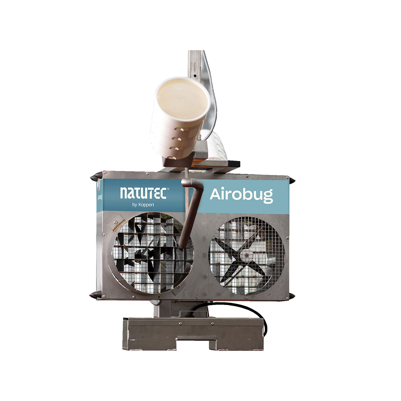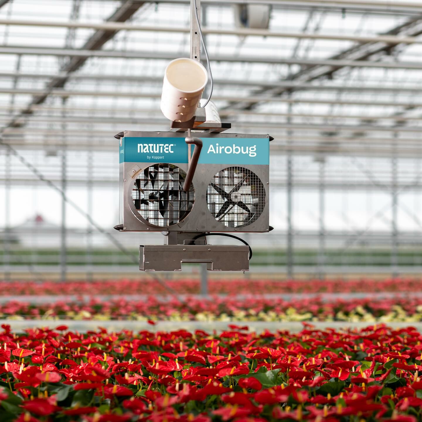 Use el Natutec Airobug para distribuir los enemigos naturales en el cultivo. El Airobug se puede usar para superficies grandes y en distribuciones sobre todo el terreno en invernaderos de alta tecnología con sistemas de transporte interno.