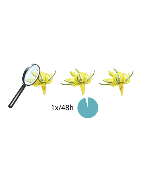La flor se debe haber polinizado antes de que se cierre. Dependiendo de las condiciones, una flor permanece abierta entre uno a tres días. Para controlar la polinización, recolecte unas 20 flores cerradas de distintos lugares. Todas estas flores deben tener marcas de mordedura. Las flores cerradas ofrecen una imagen real de la situación. Las flores que permanecen abiertas durante más de un día tienen entre una y cinco marcas de mordedura.