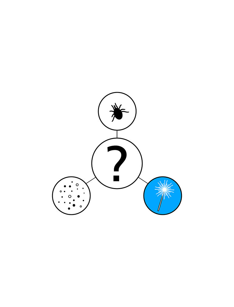 En la práctica es difícil determinar qué sustancia causa una reacción alérgica. Una alergia también puede ser causada por otros desencadenantes o una combinación de estos en su entorno (polen, salvado u otras sustancias volátiles). Para determina a qué sustancia es alérgico, se precisa realizar un test de alergia.