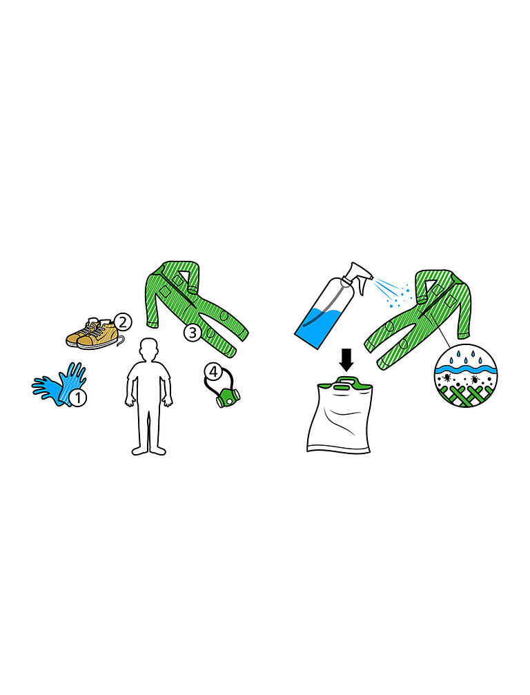 Si existe un riesgo de exposición a través de la piel, le recomendamos que use ropa protectora que cubra sus brazos y piernas (ej. un mono desechable). También le recomendamos que cubra sus manos utilizando guantes.