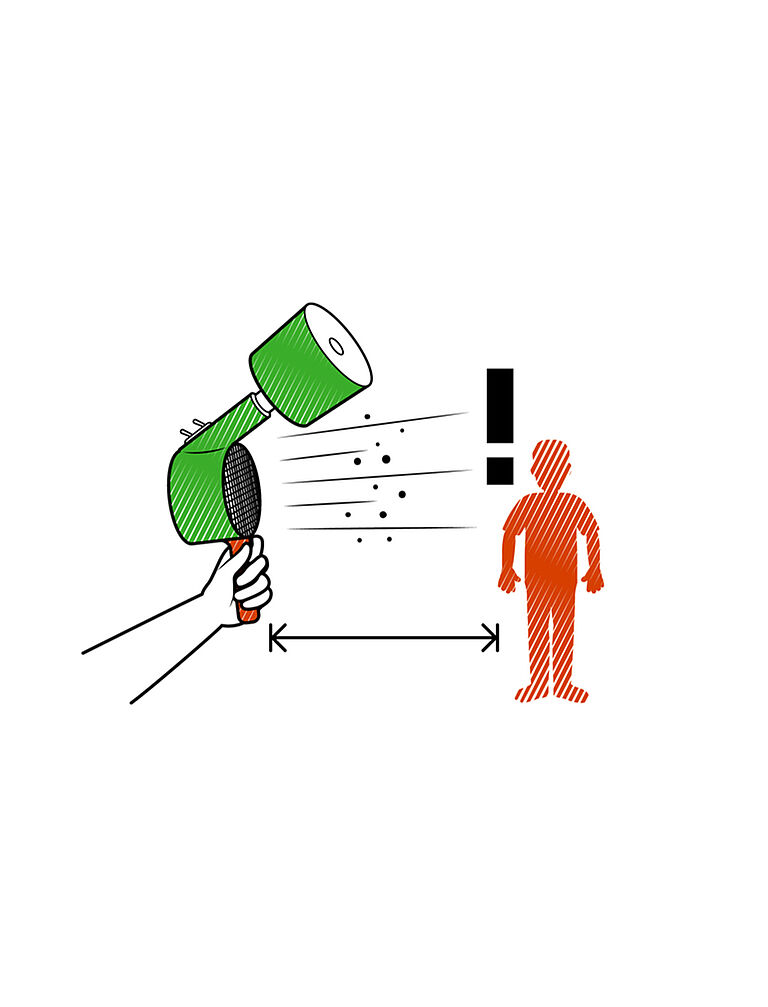 Si utiliza un dispositivo aplicador, evite el contacto directo y asegúrese de que no hay nadie situado en el flujo de aire directo del soplador.