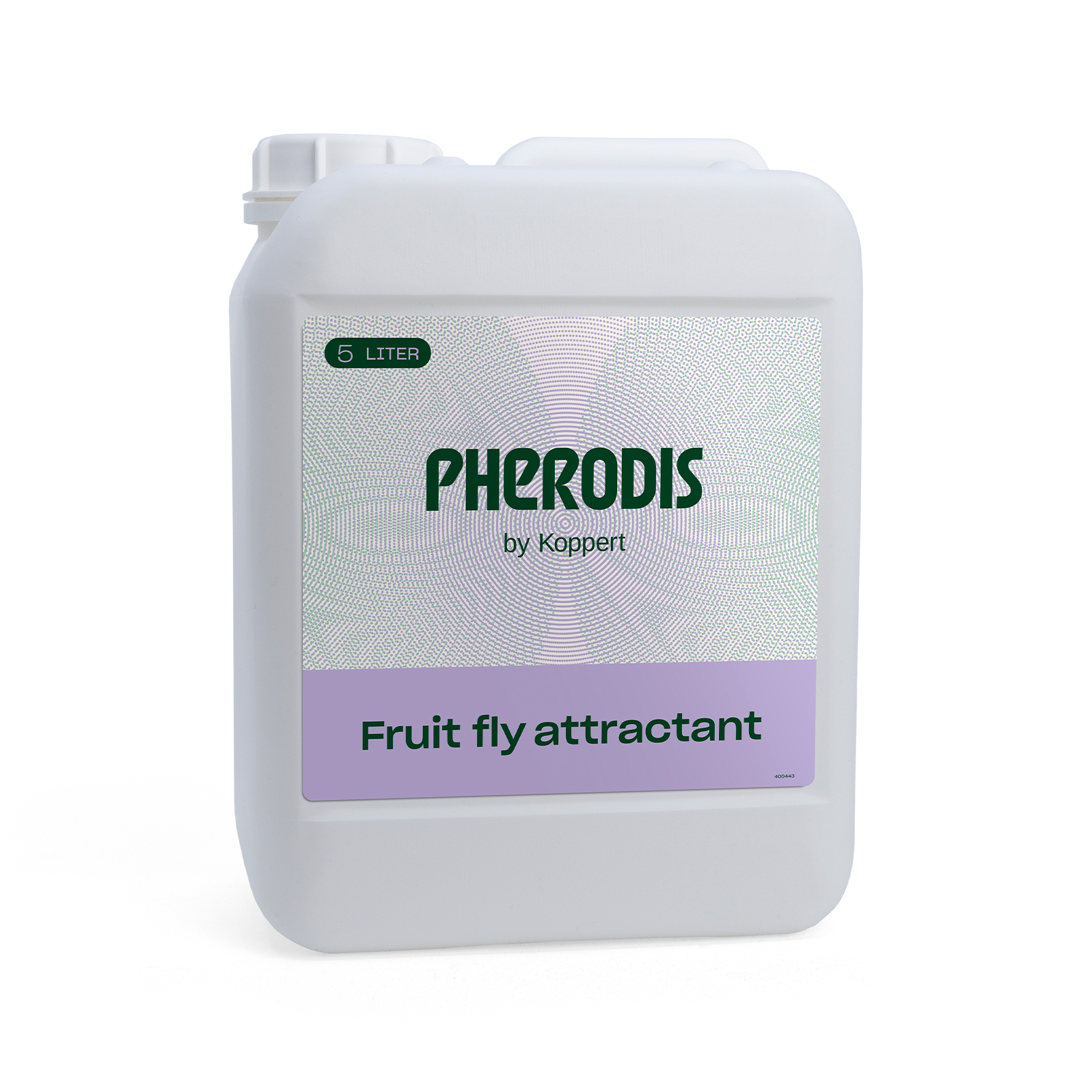 En combinación con una trampa Drososan, permite monitorear y capturar la Drosophila suzukii en varios cultivos frutales.