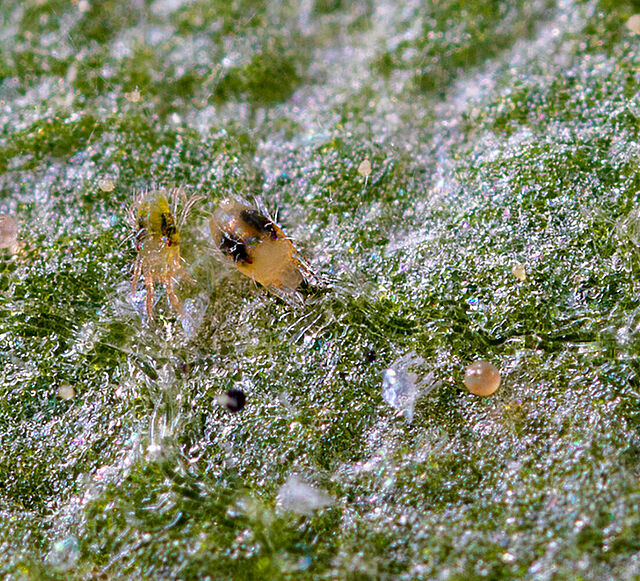 Los tetraníquidos y otras especies de ácaros pueden infestar rápidamente los cultivos de invernadero y de campo, alimentándose de las células de las plantas y provocando la decoloración de las hojas, la reducción de la fotosíntesis y la disminución de los rendimientos. Su rápida reproducción hace que la detección temprana y el control continuo sean esenciales para mantener cultivos sanos y productivos.