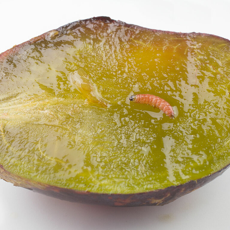 Los adultos aparecen a partir de abril o mayo dependiendo del lugar. Los huevos se ponen en frutos a partir de mayo o junio, normalmente solo uno por fruto y eclosionan tras unas dos semanas. Al emerger, las larvas penetran en el fruto, alimentándose de esta durante varias semanas y pasando por cinco estadios. A partir de junio o julio y agosto dependiendo del clima, las larvas plenamente desarrolladas abandonan los frutos e hilan un capullo bajo la corteza suelta o en otros lugares ocultos. Mientras que en las regiones más cálidas se produce una segunda generación, en las más frías entran en diapausa hasta la siguiente primavera, después de lo cual pupan.