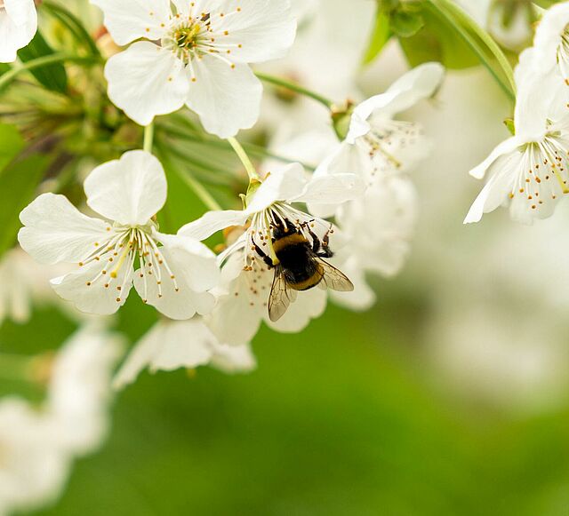 Los abejorros, en particular, son los mejores polinizadores de la naturaleza para los cultivos en campo abierto, como cerezas, manzanas y peras. Estos cultivos mejoran notablemente tanto el cuajado como la calidad de la fruta. Son robustos y llevan a cabo su valiosa labor incluso en condiciones meteorológicas desfavorables, bajas temperaturas y escasa intensidad de luz. Los abejorros visitan hasta dos veces más flores y transfieren hasta 2,7 veces más polen que las abejas melíferas para ofrecer a los cultivadores una polinización óptima.