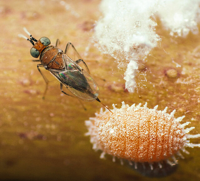Las avispas parásitas son un grupo diverso de insectos que parasitan a otros insectos, controlando eficazmente sus poblaciones. Estas diminutas avispas ponen sus huevos en el interior o sobre el cuerpo de las plagas que las hospedan. Cuando los huevos eclosionan, las larvas de avispa se alimentan del huésped y acaban matándolo. Las avispas parásitas son valiosas para controlar plagas como orugas, pulgones y moscas blancas.