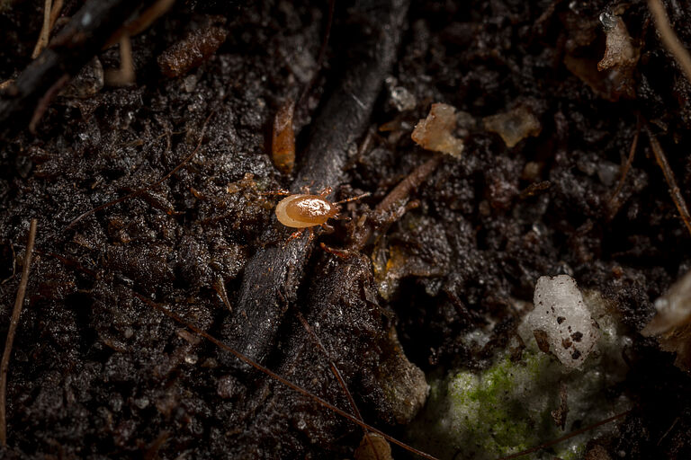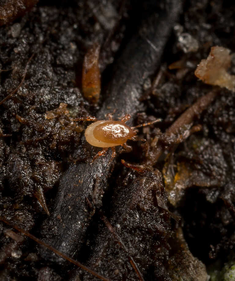 El ácaro depredador Macrocheles robustulus está disponible en un cilindro (macro-ácaro).