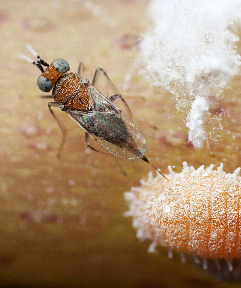 Las cochinillas y los diaspinos son insectos que se alimentan de savia y pueden debilitar y dañar las plantas. Anagyrus vladimiri (Citripar) es una especie de avispa parásita que se alimenta de cochinillas.