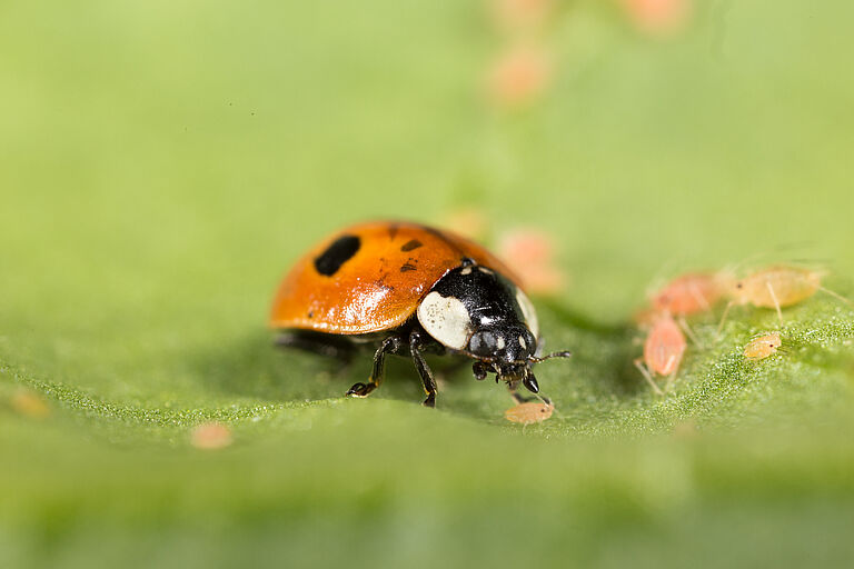 Los escarabajos depredadores, incluidas las mariquitas, son un grupo de insectos beneficiosos conocidos por su papel en el control natural de plagas. Las mariquitas controlan los pulgones gracias a su comportamiento depredador natural. Las mariquitas utilizan su agudo sentido del olfato para localizar las zonas infestadas de pulgones. Una vez que encuentran los pulgones, las mariquitas utilizan sus piezas bucales especializadas para consumirlos. Se sabe que las mariquitas son depredadores muy eficaces, capaces de consumir un número considerable de pulgones en poco tiempo. La Aphidalia, con la especie de mariquita Adalia bipunctata, es una buena solución para el control de los pulgones.