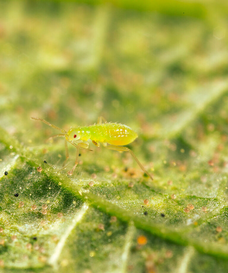 Macrolophus pygmaeus es un chinche depredador clave para el control biológico de plagas de mosca blanca, tuta absoluta y ácaros spide. Este insecto beneficioso se ha empleado ampliamente en programas de gestión integrada de plagas (GIP) en tomate. Los adultos de Macrolophus pygmaeus son chinches depredadores pequeños y delgados con marcas negras distintivas, mientras que las ninfas son de color verde pálido con ojos rojos. Tanto los adultos como las ninfas son depredadores voraces, capaces de alimentarse de diversas especies de plagas. Con su eficacia en el control de plagas y su mínimo impacto en organismos no objetivo, el enemigo natural Macrolophus pygmaeus ofrece a los productores una solución sostenible y respetuosa con el medio ambiente para la gestión de poblaciones de plagas de insectos.
