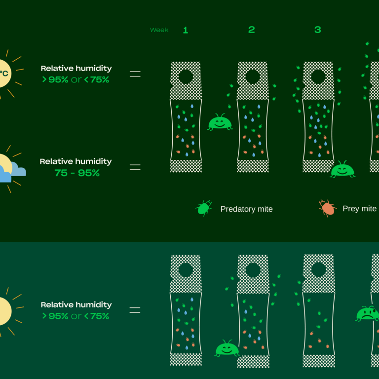 La lámina resistente al agua utilizada para Ulti-Mite abre nuevas posibilidades en la protección de cultivos al aire libre, como el cultivo de cítricos. El innovador envase permite un control de plagas estable y fiable, superando a productos similares en climas subóptimos. Tanto si cultiva pimientos, fresas, melones o cítricos, en túneles o en campo abierto, como en entornos constantemente húmedos. Su sistema patentado protege a los ácaros depredadores tanto de la humedad excesiva como de la deshidratación, garantizando el éxito de la gestión integrada de plagas incluso en las condiciones más difíciles.
